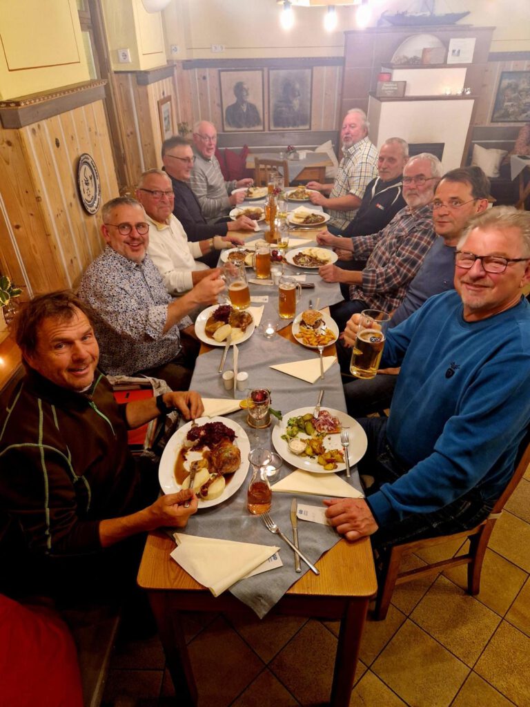 Jeder weiß, dass unser Verein im Jahr 1968 gegründet wurde, zumindest wenn man sich mit unserer Vereinsgeschichte beschäftigt. Doch wie fand damals das Vereinsleben statt? Die meisten der damaligen Mitglieder spielen heute zwar kein Volleyball mehr, haben aber jede Menge schöne Erinnerungen an die damalige Zeit. Es wurde ausschließlich in der Turnhalle in Königstein trainiert. Einer der Gründungsmitglieder war Alexander Hauck, der sein Geschäft mit Werkstatt am Pfaffenberg hatte. Jeden Freitag nach dem Training begaben sich die Volleyballer in seine Werkstatt um den Abend ausklingen zu lassen. So entstand ab den 70er Jahren das erste Vereinsleben mit Verabredungen zu Familienwanderungen, Turnierteilnahmen und das bis heute traditionelle eigene Turnier. Bis zum Hochwasser 2002 wurde diese Tradition aufrechterhalten. Auf Grund gewachsener Mitgliederzahlen gab es ab dann ganz unterschiedliche Vereinsräume die teils privat organisiert oder von der Stadt gestellt wurden. Im Jahr 2004 konnte der Verein das Vereinsgelände an den Elbwiesen übernehmen und herrichten. Andreas Heinrich und Daniel Hauck waren damals die zwei „jüngsten“ Werkstatttreff-Teilnehmer und hatten sich für dieses Jahr ein Treffen der „älteren Generation“ auf die Fahne geschrieben. Am 07.12.24 war es soweit. Insgesamt 10 Teilnehmer saßen im Gasthaus Ziegelscheune und ließen die alten Zeiten aufleben. Mit vielen Bildern, Urkunden und Zeitungsartikeln konnte die Chronik bis zur heutigen Zeit Revue passiert werden. Viel hat sich getan. Heute gibt es ca. 150 Mitglieder in der KVG. Viele Kinder und Jugendliche werden aktuell gefördert und lassen in eine starke Volleyball-Zukunft im oberen Elbtal blicken. Unsere „Werkstattgeneration“ hat den Grundstein dafür gelegt. Der aktuelle Vorstand und Beirat übermittelte in einem Brief dankende Worte für die viele ehrenamtliche Arbeit an alle Teilnehmer dieser lustigen Runde. Wir wissen nun auch selbst, wieviel Arbeit hinter dem Vereinsleben steckt und können mit Stolz sagen: „Es geht weiter!“ Vielleicht schleicht sich nun eine neue Tradition im Verein ein und unsere „Werkstattgruppe“ trifft sich demnächst wieder…
