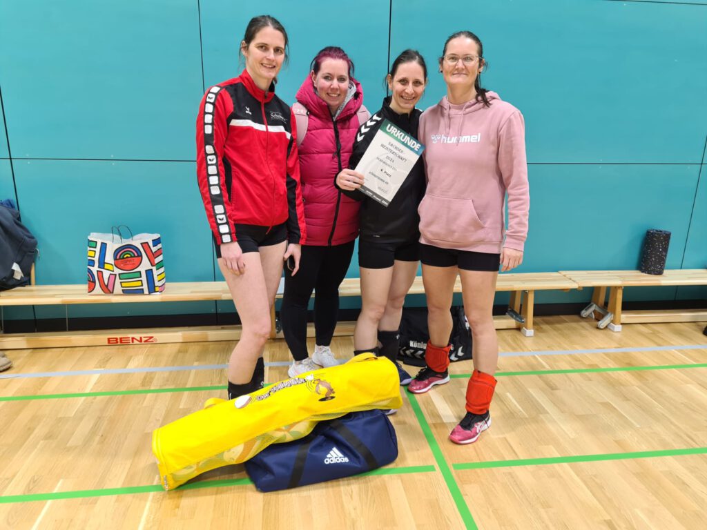 In der Vorrunde trafen wir auf Coschütz, Motor Mickten und TU Dresden. Eigentlich alles bekannte Gesichter aus der Sachsenklasse und-liga, bis man sich die Damen der TU genauer betrachtete. Die Gesichter waren immer noch bekannt, allerdings aus dem Fernsehen. Wir staunten nicht schlecht ehemalige DSC- und Nationalspielerinnen zu sehen, die sich aufwärmten, um gegen uns zu spielen. Mit ihren über 1600 Länderspielen auf dem Feld, konnten wir das Spiel einfach nur genießen. Als Bonus gab es noch ein Erinnerungsfoto. Das war die Teilnahme an dieser Meisterschaft absolut wert!